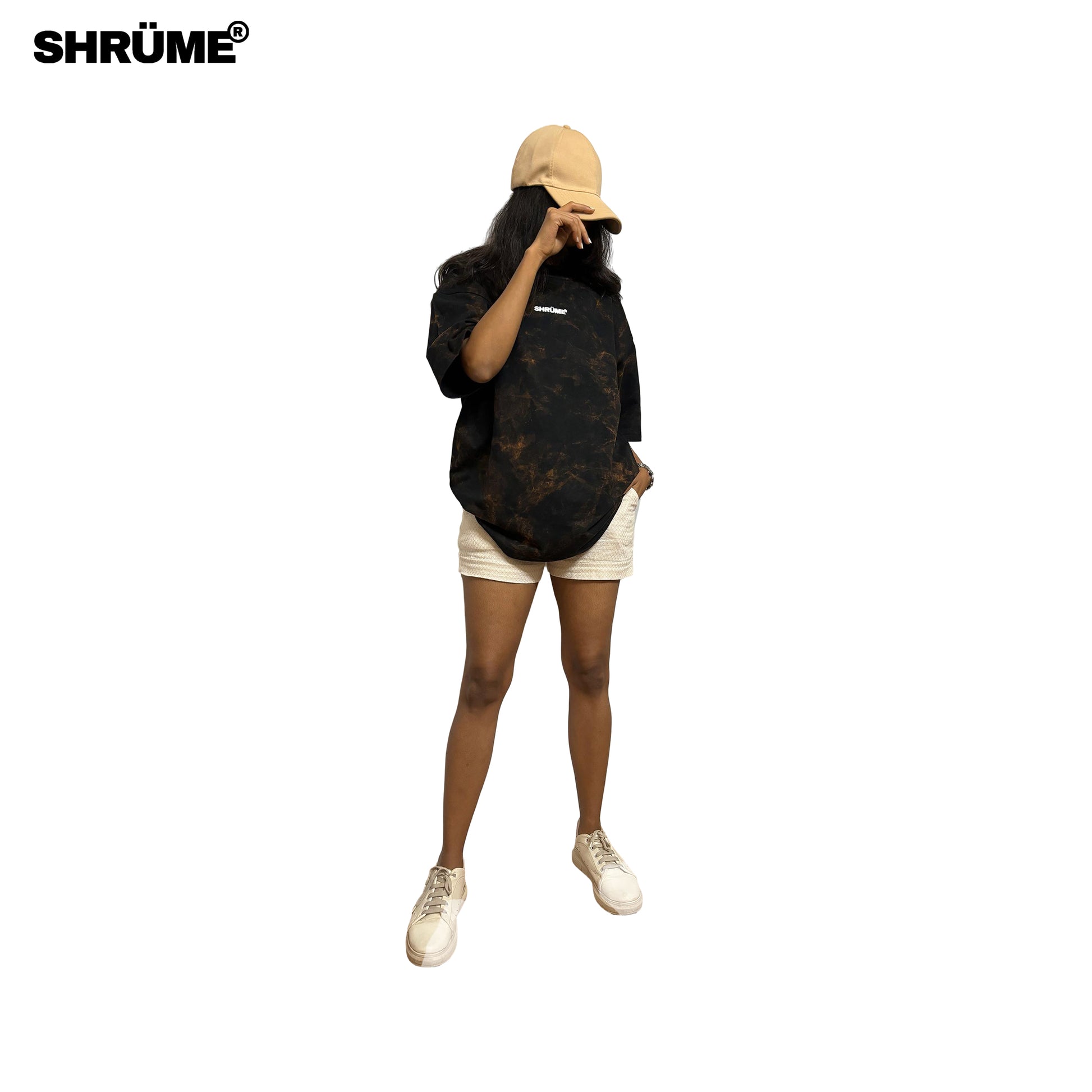 Black round neck t-shirt with original SHRUME handmade artwork painted on back and front.